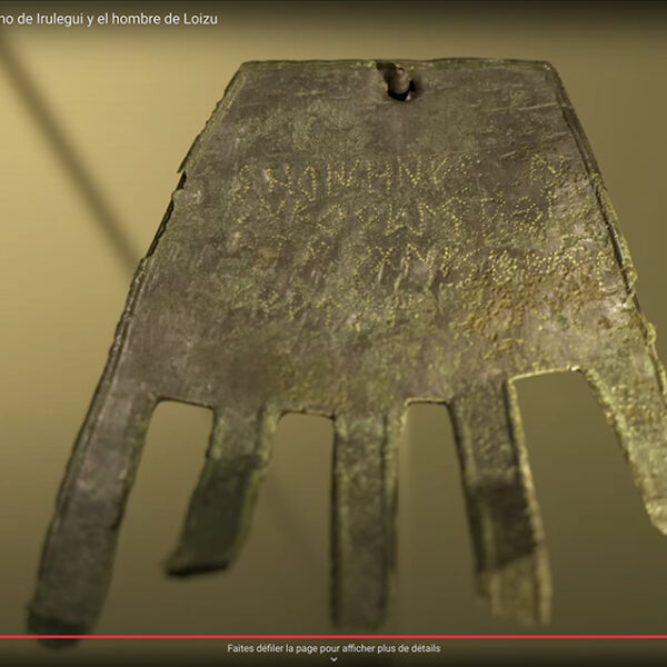 Aranzadi – Ciencias https://www.youtube.com/watch?v=9hCtLBKAv_I&t=8s Hallada en el monte Irulegi, una mano de bronce del siglo I a.C. con la inscripción en lengua vascónica más antigua